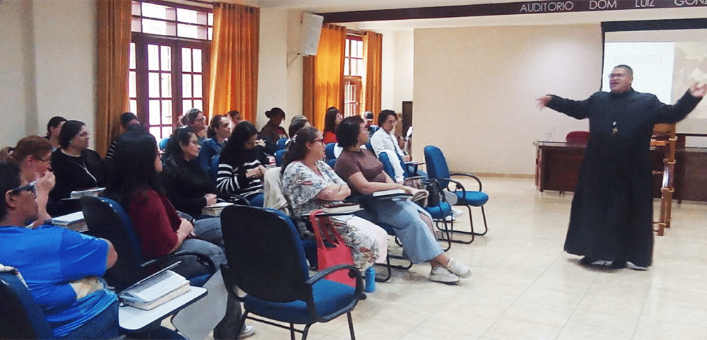 Sob a assessoria do Seminarista Flávio, que conduziu a reflexão sobre a Eucaristia. Foi um momento de Espiritualidade, oração e consciência do papel do coordenador na Iniciação à Vida Cristã.